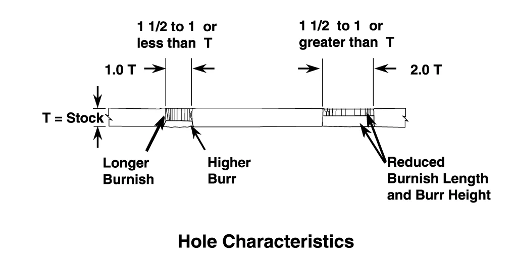 - Too small a clearance will cause secondary shear, resulting in rough hole walls.