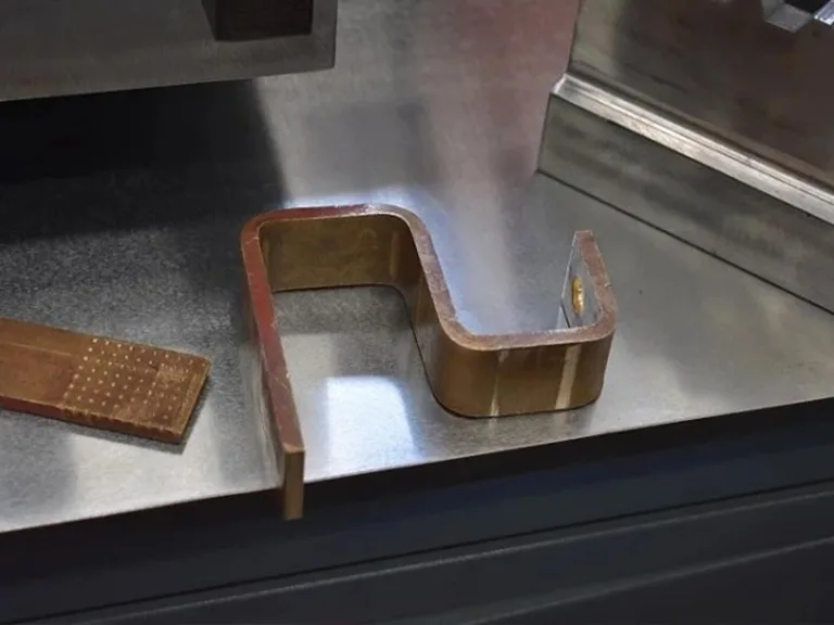 The SS-50-3CNC busbar punching machine’s bending unit is equipped with a PLC module, allowing the operator to input any angle (0°-180°), which the machine then automatically bends to. The bending angle and accuracy are independent of operator skill.